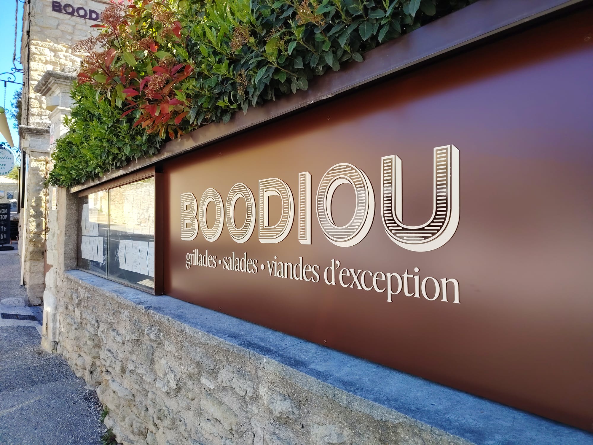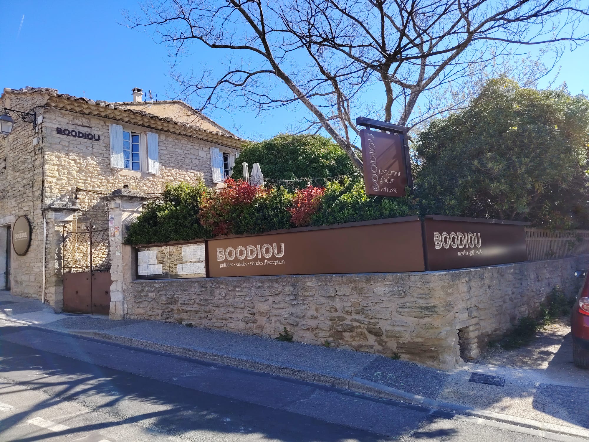 Located in the center of the village of Gordes, the Boodiou restaurant offers vegetarian dishes, vegan dishes but also exceptional grilled meats, generous mixed salads, sharing boards and ice cream sundaes.